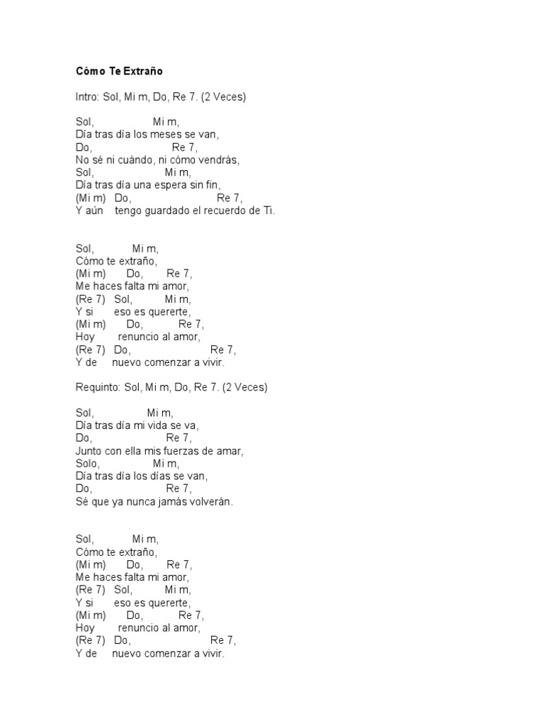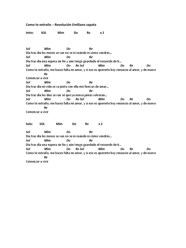 Dia tras dia los meses se van No se ni como ni cuando vendras Dia tras dia un espera sin fin Y aun tengo guardado el recuerdo de ti. Aprenda a tocar a cifra de Como te extraño La Revolucion De Emiliano Zapata no Cifra Club. Y de nuevo comenzar a vivir.